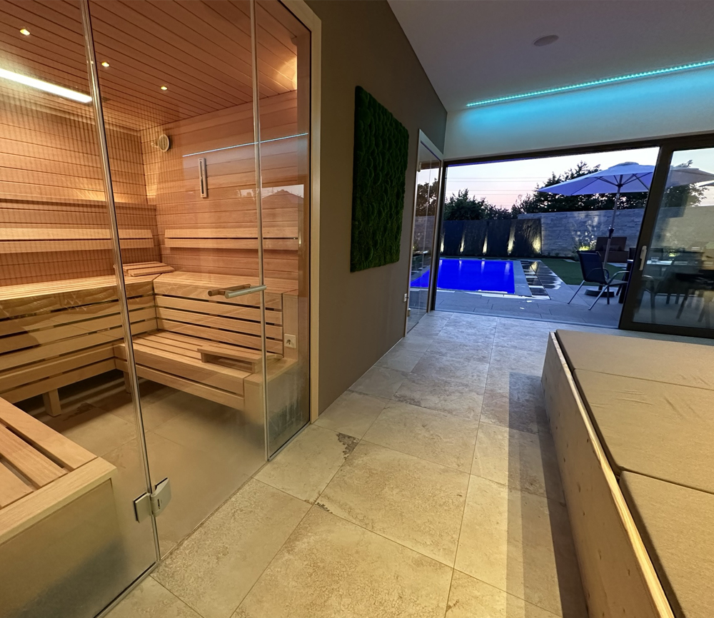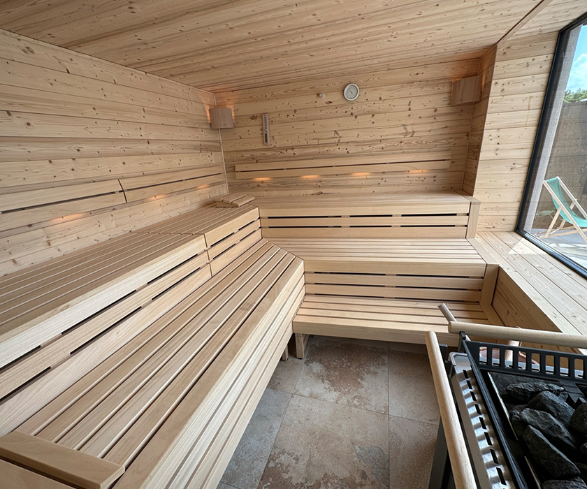 Regelmäßige Saunabesuche stärken die Abwehrkräfte, regen den Stoffwechsel an und verbessern die Durchblutung. Ausgewählte Aufgussmischungen, feinste Hölzer und der Blick in den Garten schaffen ein besonderes Saunaerlebnis. Durch eine sehr hohe Temperatur (80 bis 90 °C) und eine niedrige Luftfeuchtigkeit wird der Fokus auf intensiver Hitze gelegt.